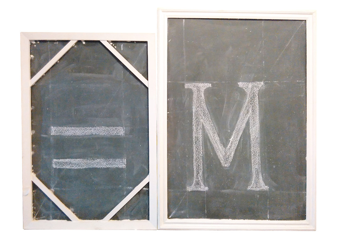 Tinta de lousa sobre eucatex em moldura reciclada. Peça única.